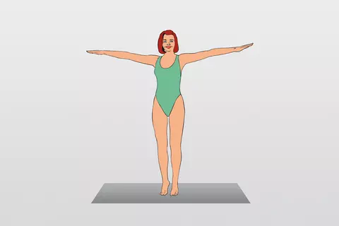Zehenstand, Arme zur Seite, Fersen nach innen und außen drücken (10 x).